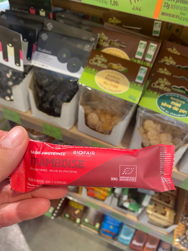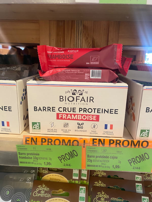 👉 La barre Biofair (framboise ou autre) est l’une des plus clean du marché grand public. Elle est parfaite pour :