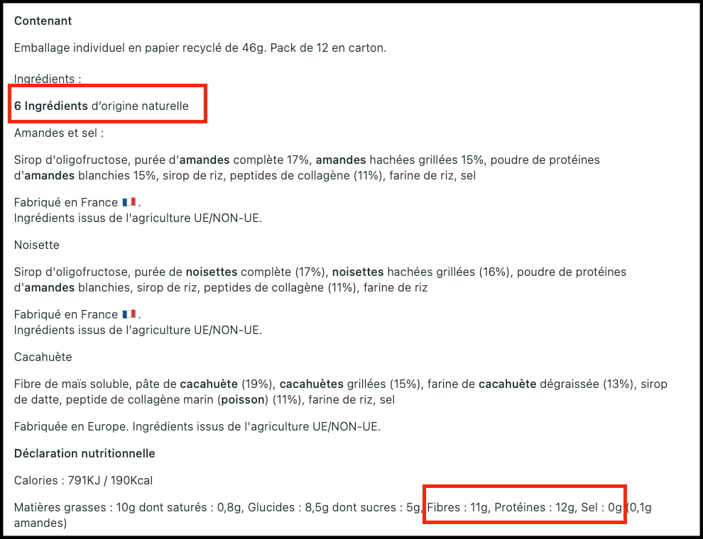 ➡️ C’est cher. Même pour une barre au collagène. Mais on dit que la qualité a un prix.