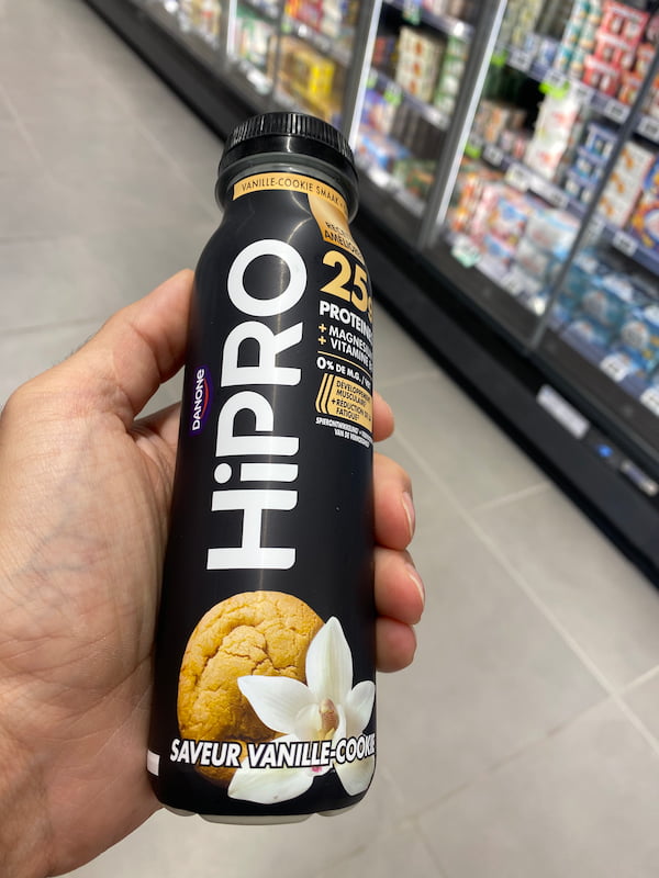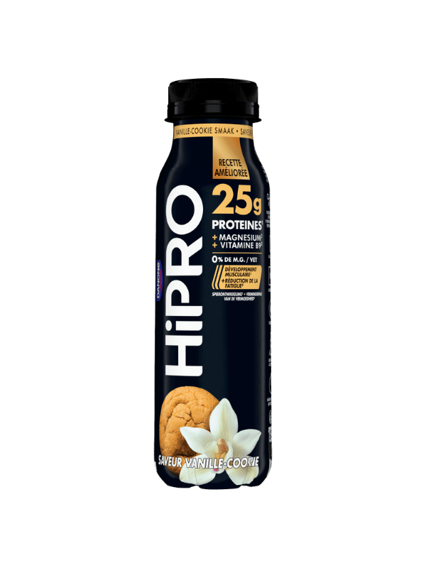 HiPRO est une gamme lancée par Danone pour se positionner sur le marché des protéines grand public. L’idée : proposer des produits laitiers riches en protéines, directement accessibles en supermarché, sans passer par un magasin de nutrition sportive ou une commande en ligne. La Grande Bouteille Myrtille est leur produit phare dans la gamme « à boire » – un yaourt liquide de 300 g qui apporte 25 g de protéines par bouteille.