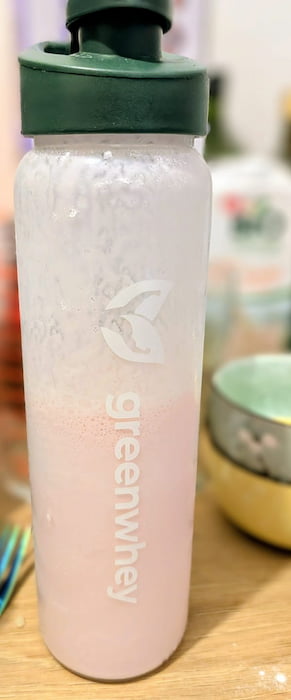 Le milkshake Greenwhey se mélange à l’eau ou au lait. Avec de l’eau, la texture est légère et fraîche. Avec du lait, c’est plus crémeux – plus proche d’un yaourt protéiné. Mais si tu veux un vrai repas liquide post-entraînement, ajoute une demi-banane et 30 g de flocons d’avoine dans un blender avec du lait. Le résultat est épais, rassasiant, et tu montes facilement à 35-40 g de protéines avec un profil glucidique complet. C’est ce que je fais quand j’utilise ce produit.