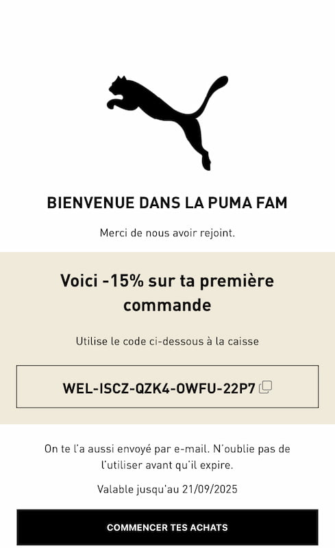 Vous cherchez un code promo Puma ? Bonne nouvelle : il existe une méthode simple et 100% officielle pour en profiter.